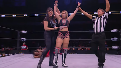 The Jamie Hayter match was pretty much a squash but the part with Rache' wanting to comb her bangs and her pretending to play along for a while was classic wrestling cheese. I also liked how Hayter continued to mock her after she won. We do need to see more Jamie solo matches. She has a start with solo matches earlier in AEW but after she came back she's pretty much Britt Baker's enforcer. I'd like to see more Jamie (and some Rebel) solo matches.